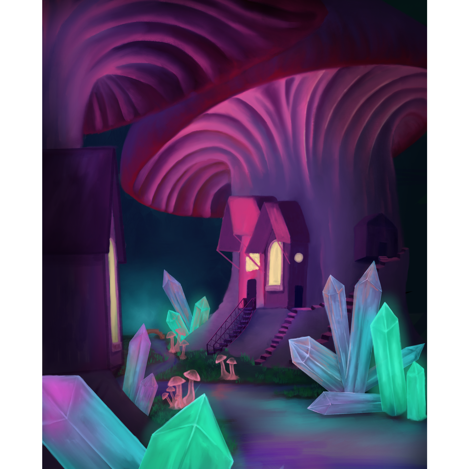 Art Prints › Mushroom Midnight Image 1 of 2 Image 2 of 2 Mushroom Midnight from $12.00 Size: Select Size 6x9in 8x12in 11x14in Quantity: Purchase Added!